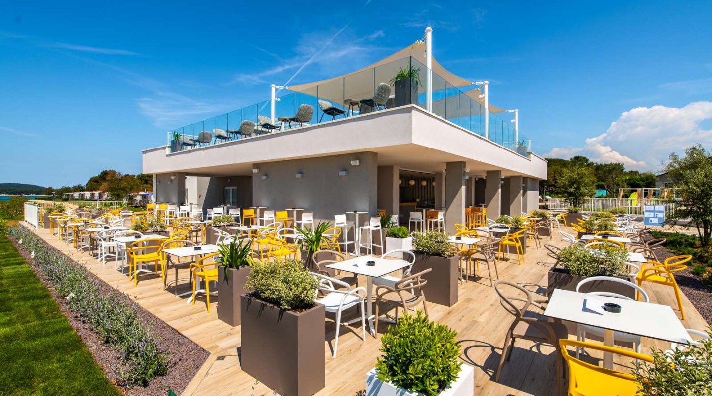 Genießen sie ein kühles getränk oder einen leckeren snack auf unserer spektakulären dachterrasse mit einem atemberaubenden blick auf die adria. Unsere lebhafte poolbar ist ganztägig geöffnet und bietet besondere cocktails, spritz, täglich frische sandwiches und eis.