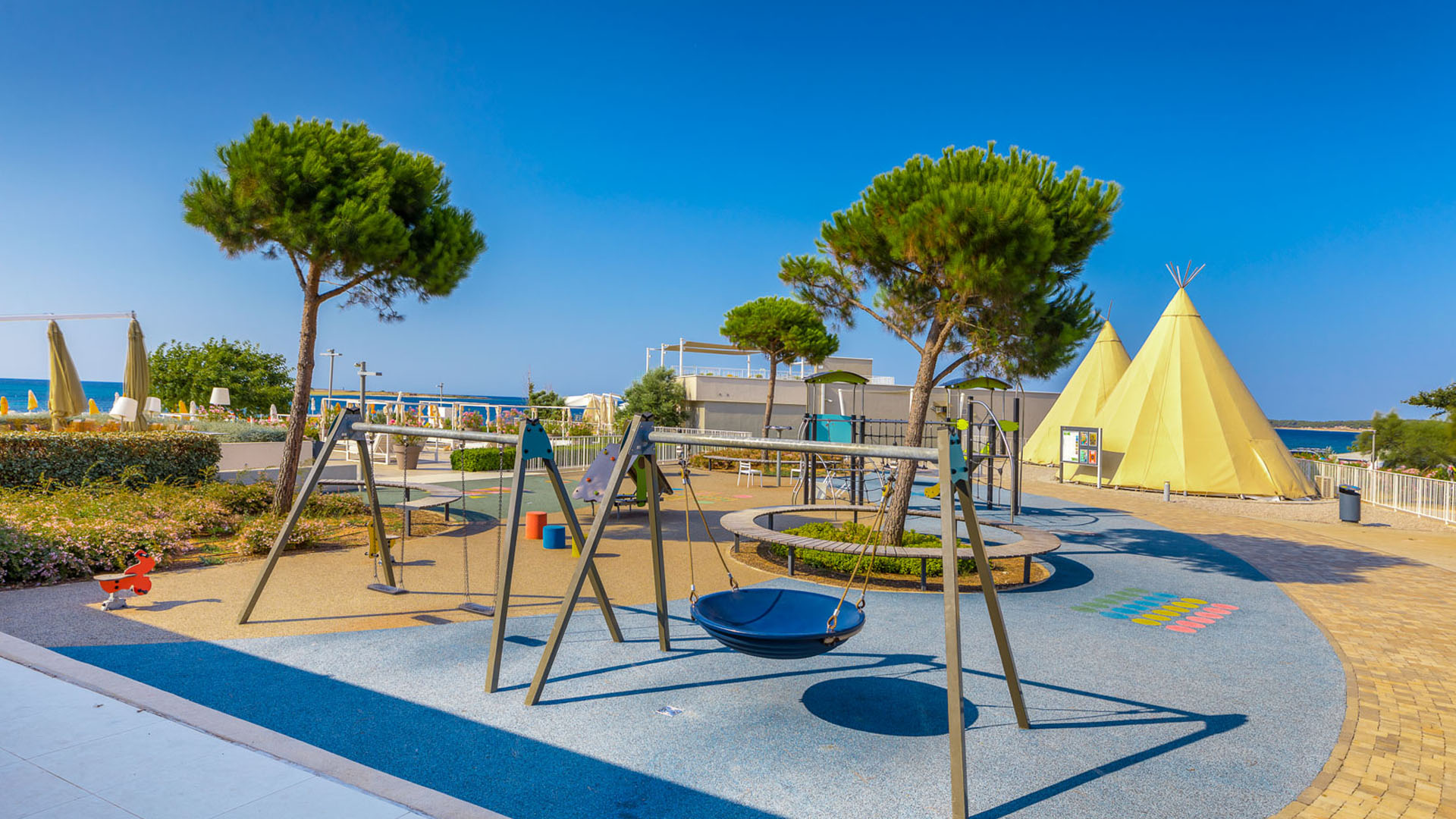 Djeca imaju obilje zabave, uključujući 3 igrališta u različitim dijelovima kampa i bazen s interaktivnim igrama i toboganima za maksimalno uživanje u odmoru.