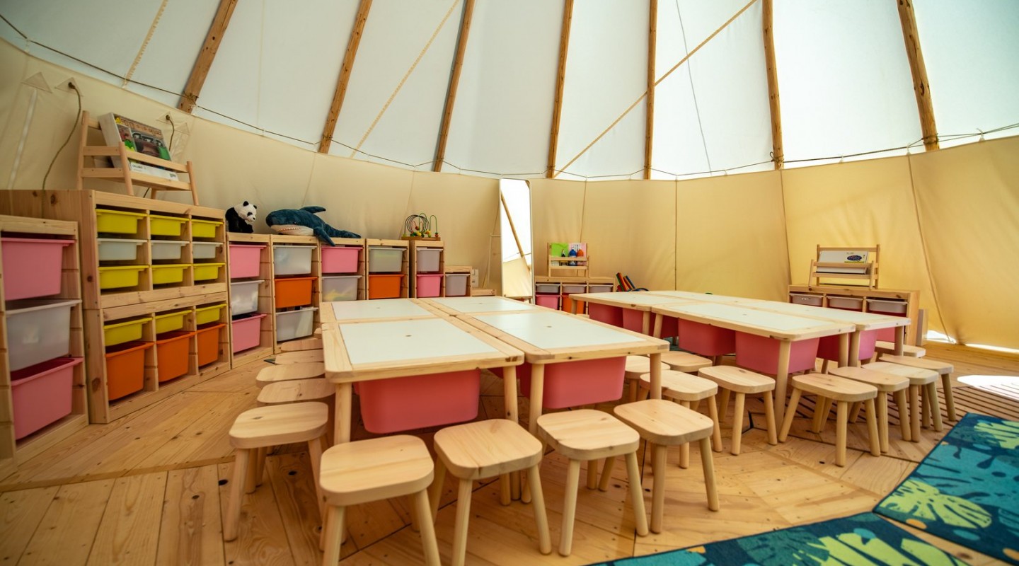 U našem Teepe šatoru u neposrednoj blizini aktivnog bazena pronaći ćete sve za najluđe kreativne radionice. Jutro započinjemo tjelovježbom. Nakon kreativnog kutka, vrijeme je za plivanje, tenis ili možda koju riječ hrvatskog jezika. Natjecanja u raznim mini sportskim turnirima, utrke u našim super mini automobilima. Najbolja stvar je što je svaki dan druga tema 14 dana.
